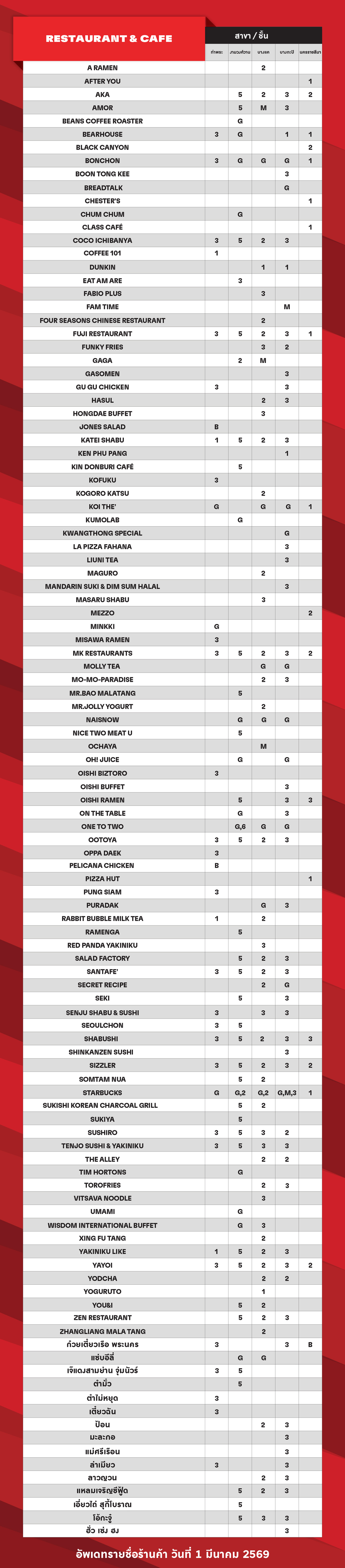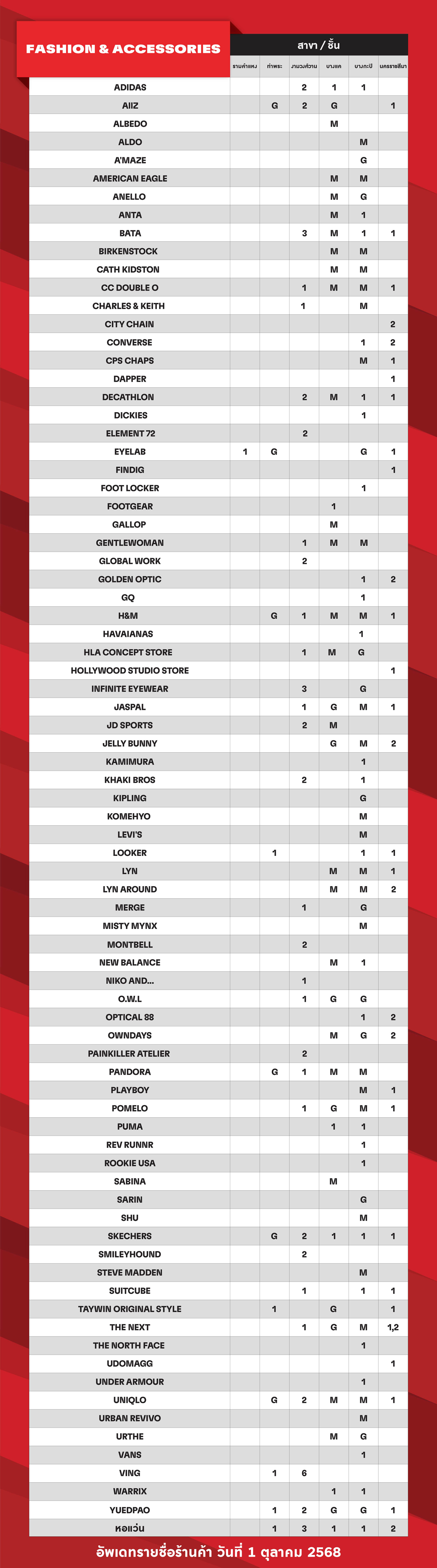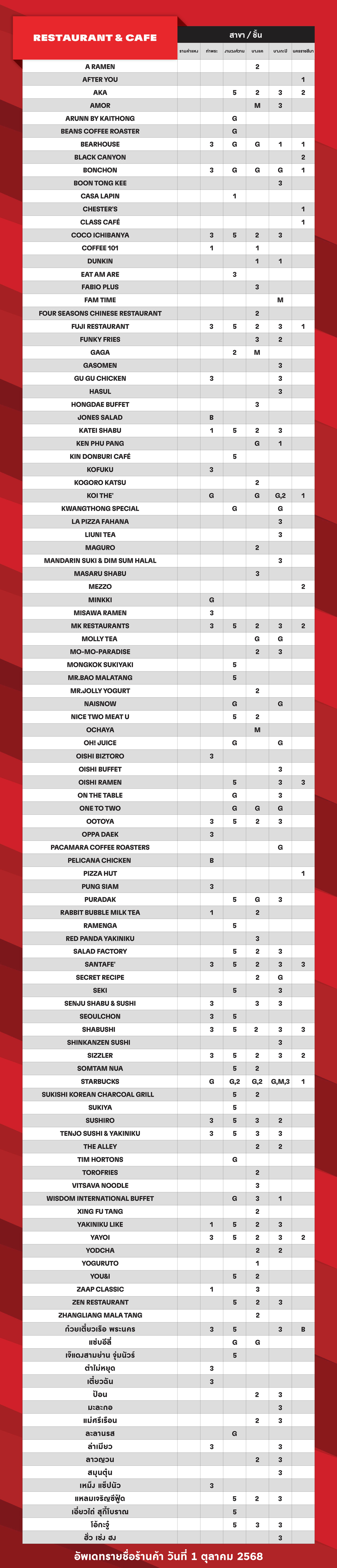 ตรวจสอบรายชื่อร้านค้าในศูนย์ฯ ที่รับคูปองแทนเงินสดศูนย์การค้า