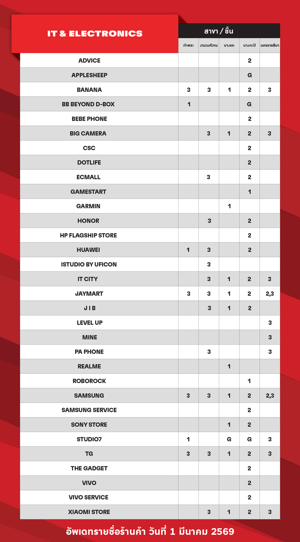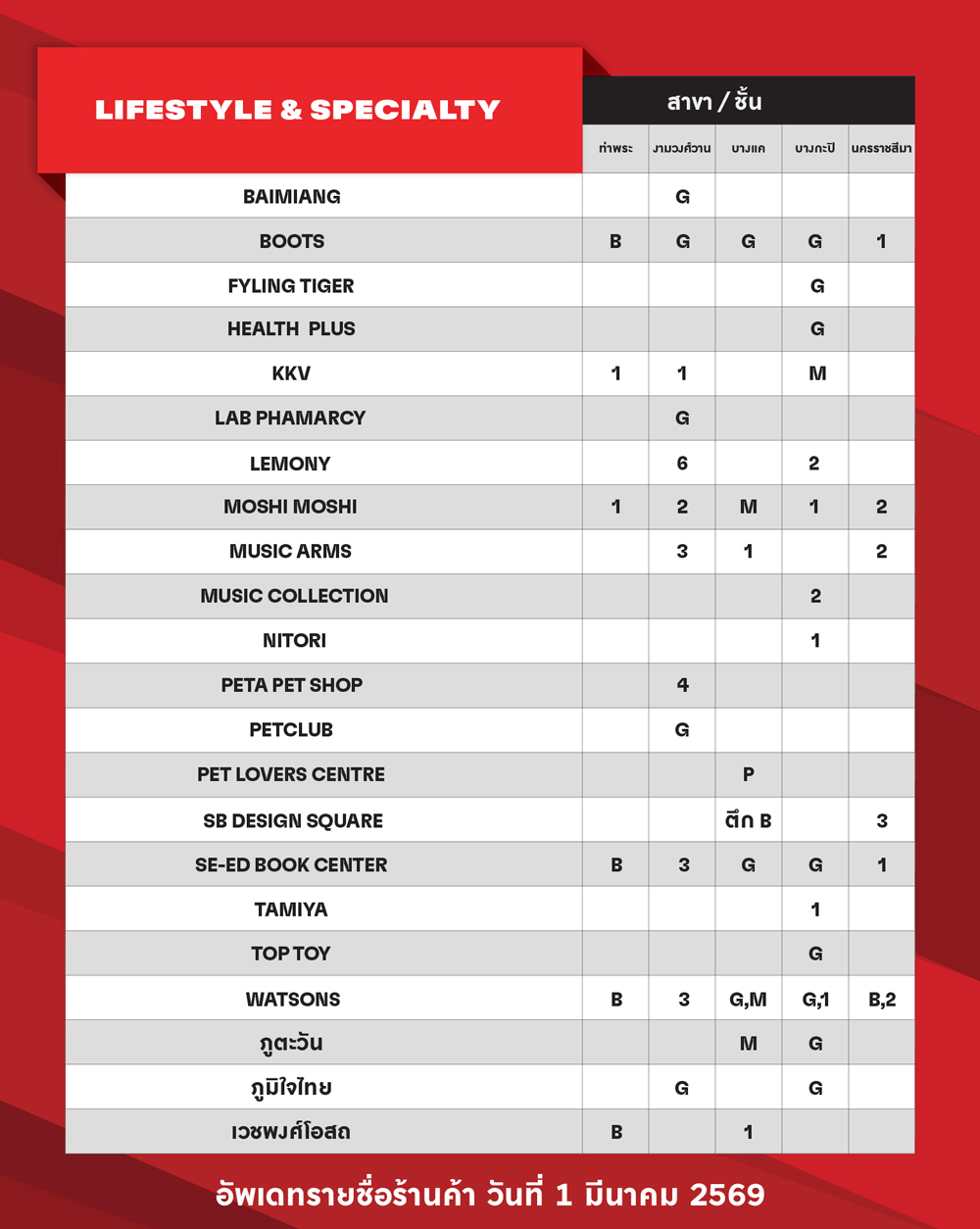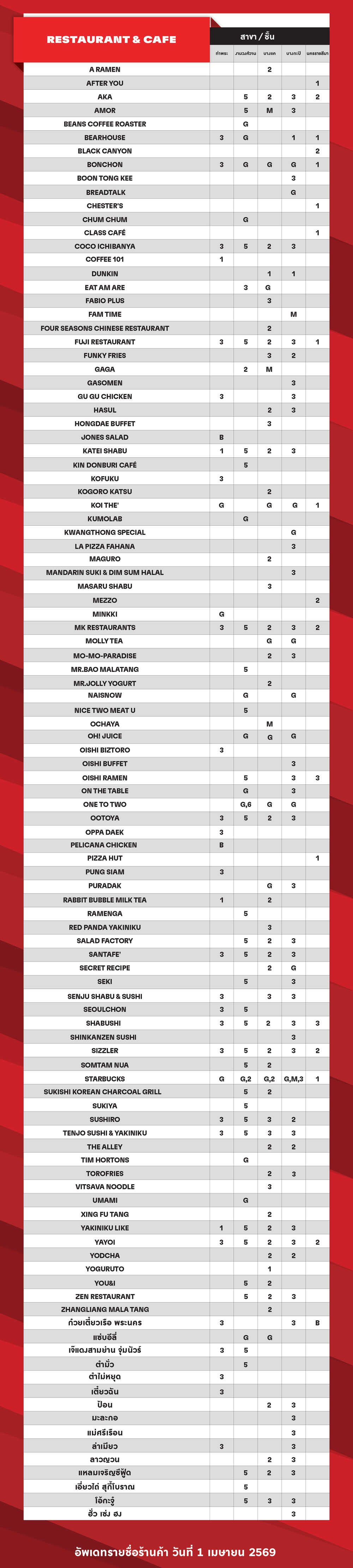 ตรวจสอบรายชื่อร้านค้าในศูนย์ฯ ที่รับคูปองแทนเงินสดศูนย์การค้า